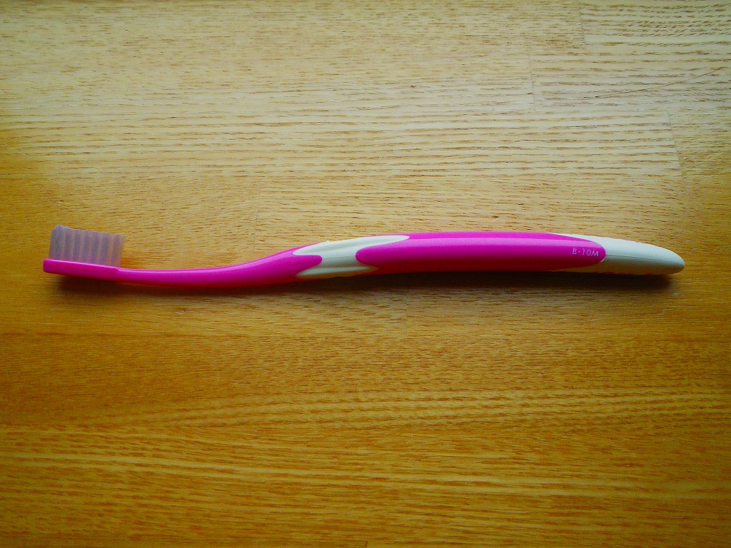 「B-20M」より山形の部分が低くなり、引っかかりが余り無くなるのではないか、歯間に入りにくくなるのではないかと思っていたのですが、意外にそれほど感じず、フラットな歯ブラシより充分に多く歯間に入って磨ける感じでした。