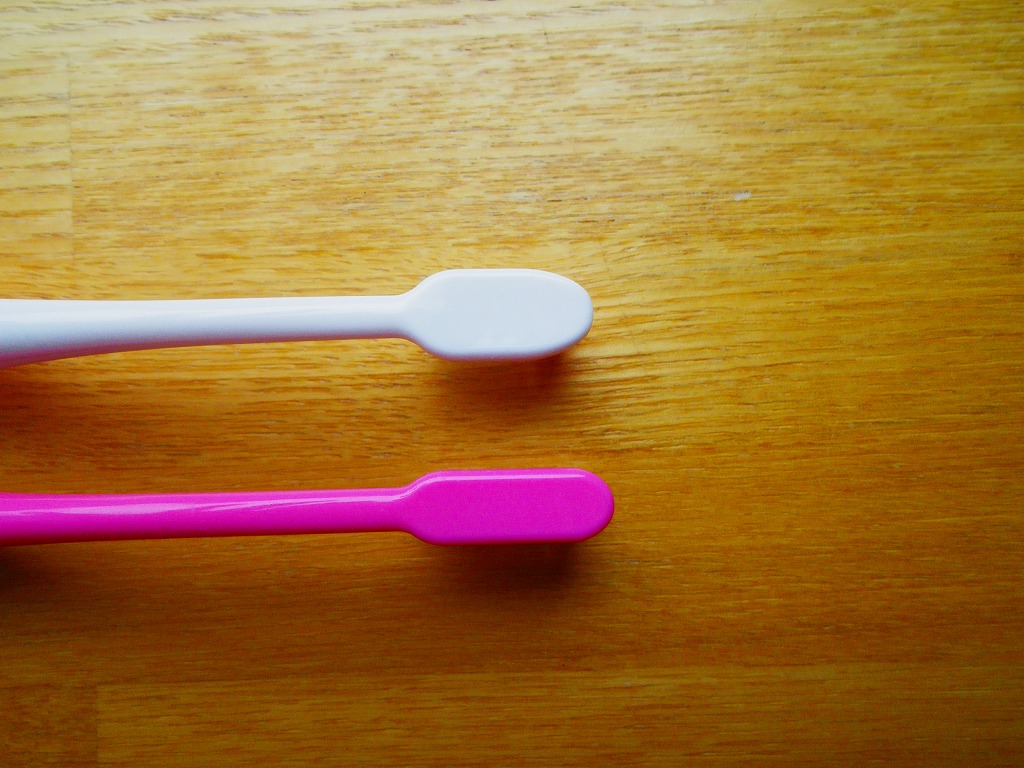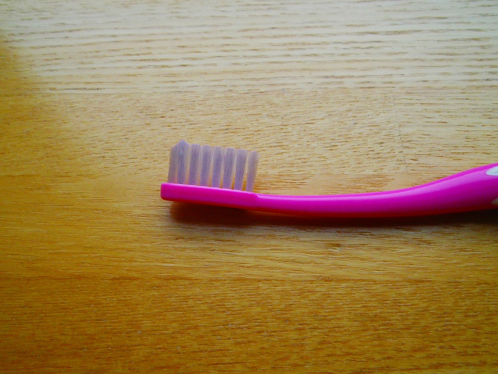 また、フラット(平ら)な歯ブラシより、山形の先端部分がある分、歯と歯の間に入り込みやすく、小さい割りには、歯に接着するブラシ部分が大きくあるため、歯垢は落ちると思います。