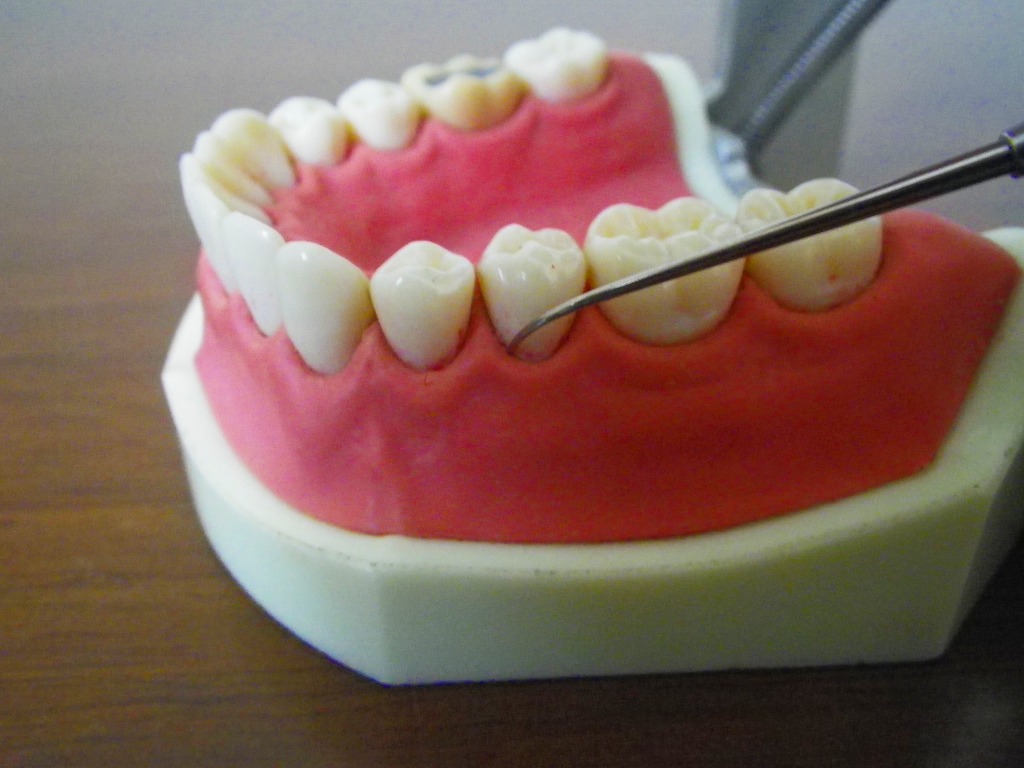 この隙間は健康な歯ぐきでも、2㎜ぐらい空いているので、器具の先は痛み無く入ります。