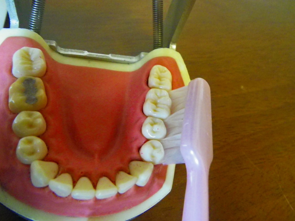 毛の向きや角度を傾けて、普段磨けないところにも毛先が届くように気をつける、等々ということをお伝えするブラッシング指導が行われます。
